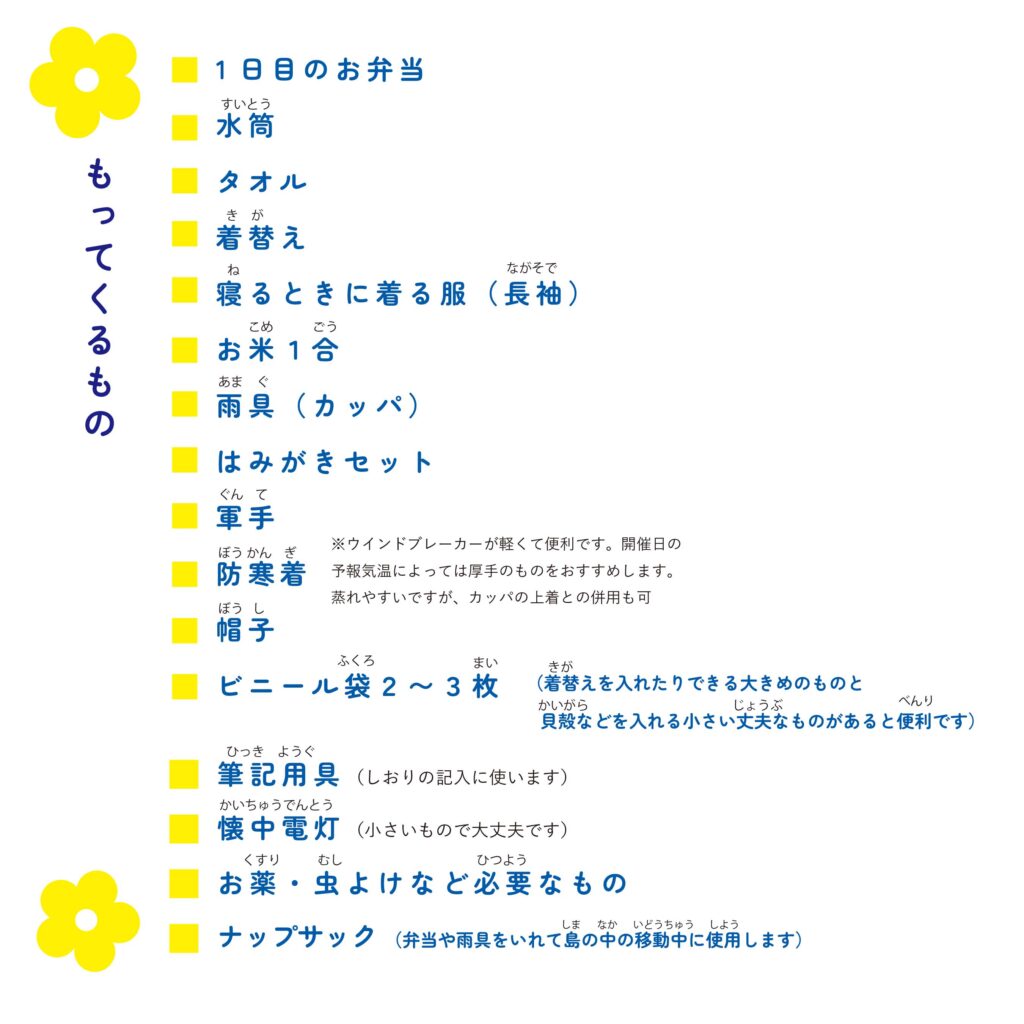 *ゲームやスマホ・お菓子は持ってこないでください。