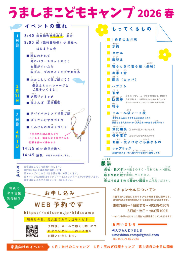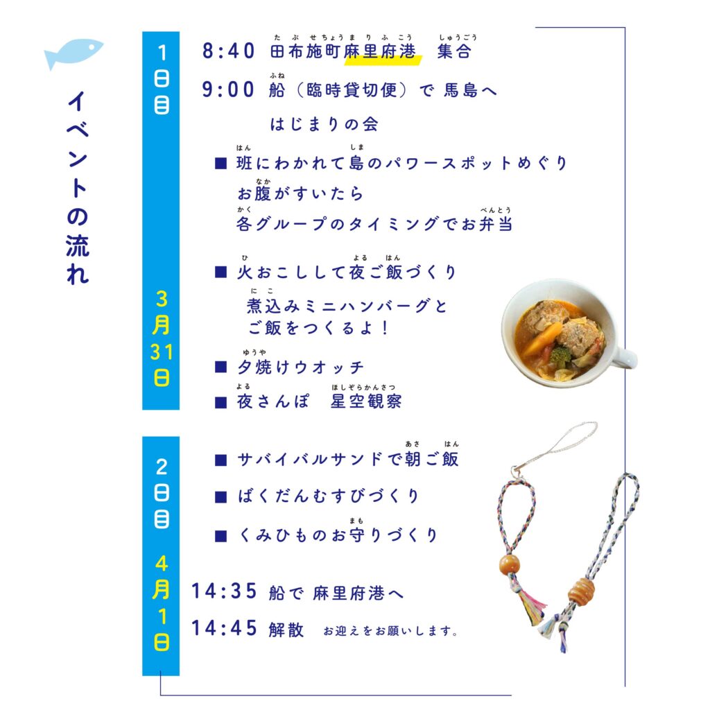 8:45 田布施町麻里府港集合 翌日14:45解散予定